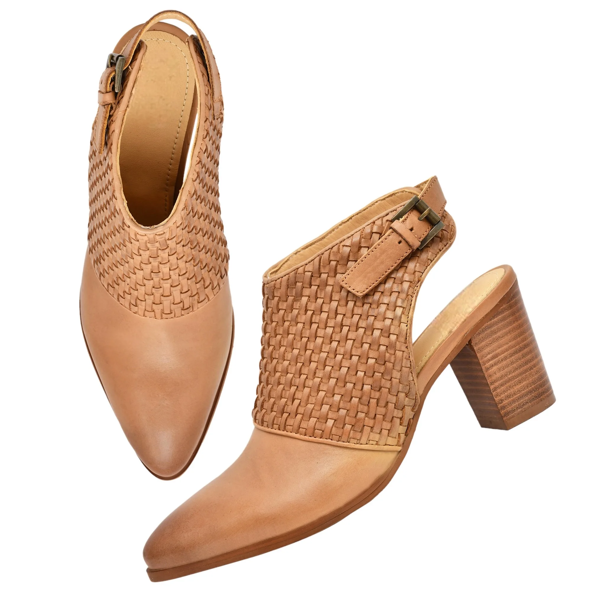 Block heel sandals are an ideal choice for modern women who seek both comfort and refined design in their everyday footwear. These beige sandals feature a woven leather-inspired upper that enhances breathability and gives the product a unique textured look. The block heel ensures balanced support for long hours, making these sandals suitable for office wear, brunch meets, travel days and general daily outings. The pointed toe silhouette further refines the aesthetic and complements both casual and semi-formal clothing. With cushioned comfort and an adjustable back strap, these sandals are designed to deliver reliable performance for extended use.