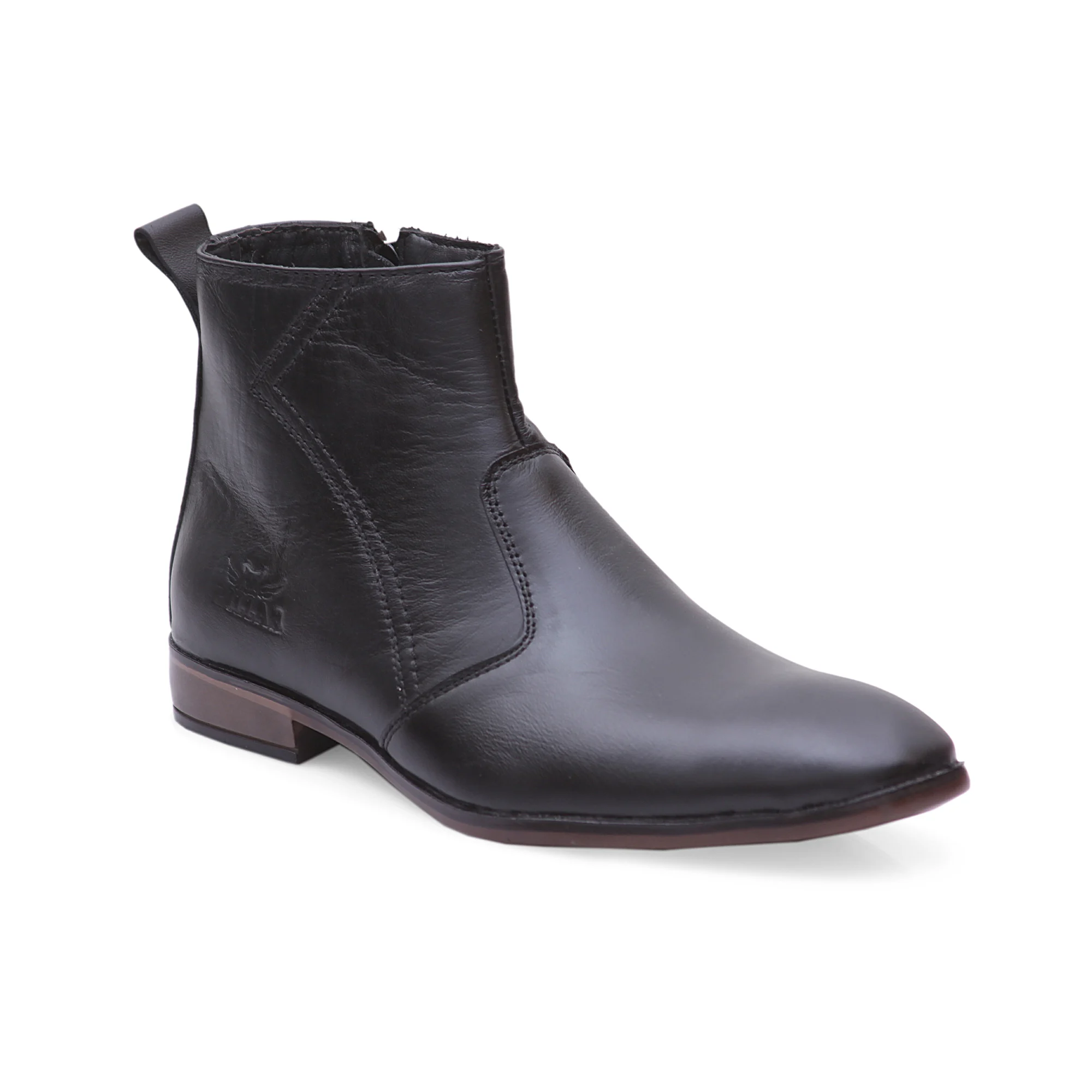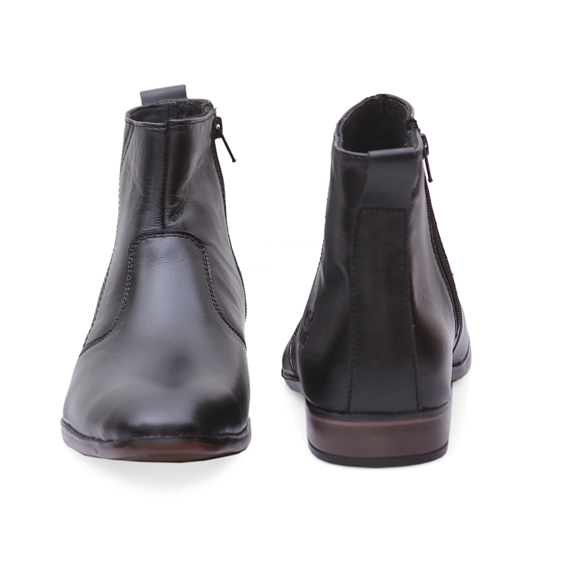 A functional inner side zipper enhances convenience, allowing quick wear without compromising the boot’s sleek look. The zipper placement is subtle and integrated neatly into the design, preserving the clean aesthetic. The ankle-length cut offers sufficient coverage for light support while maintaining flexibility for comfortable movement. This structure makes these Men Black Boots appropriate for daily office use, business travel, or casual outings during cooler seasons.