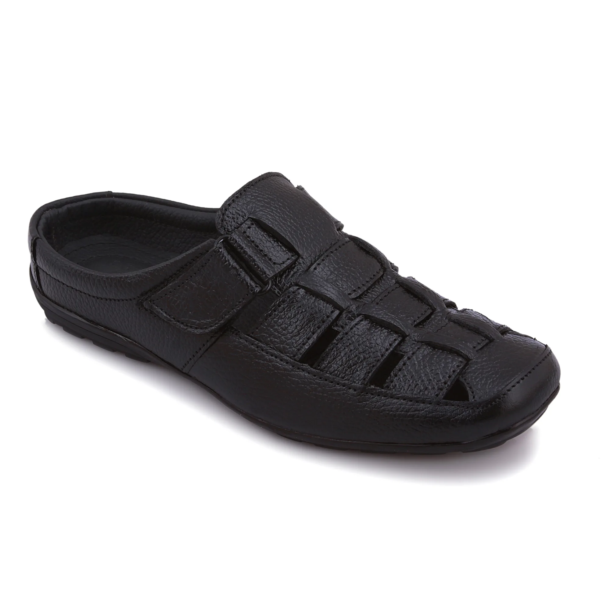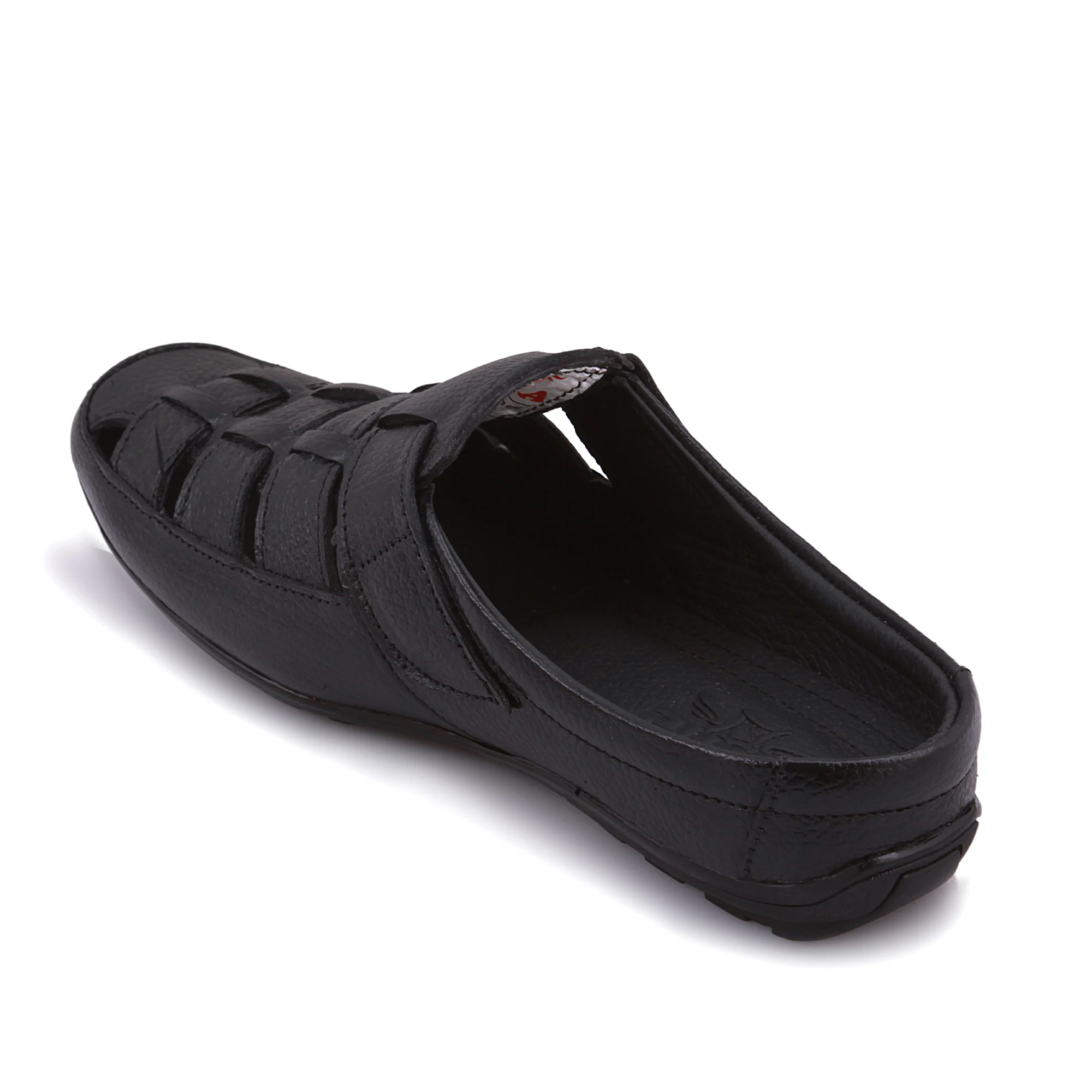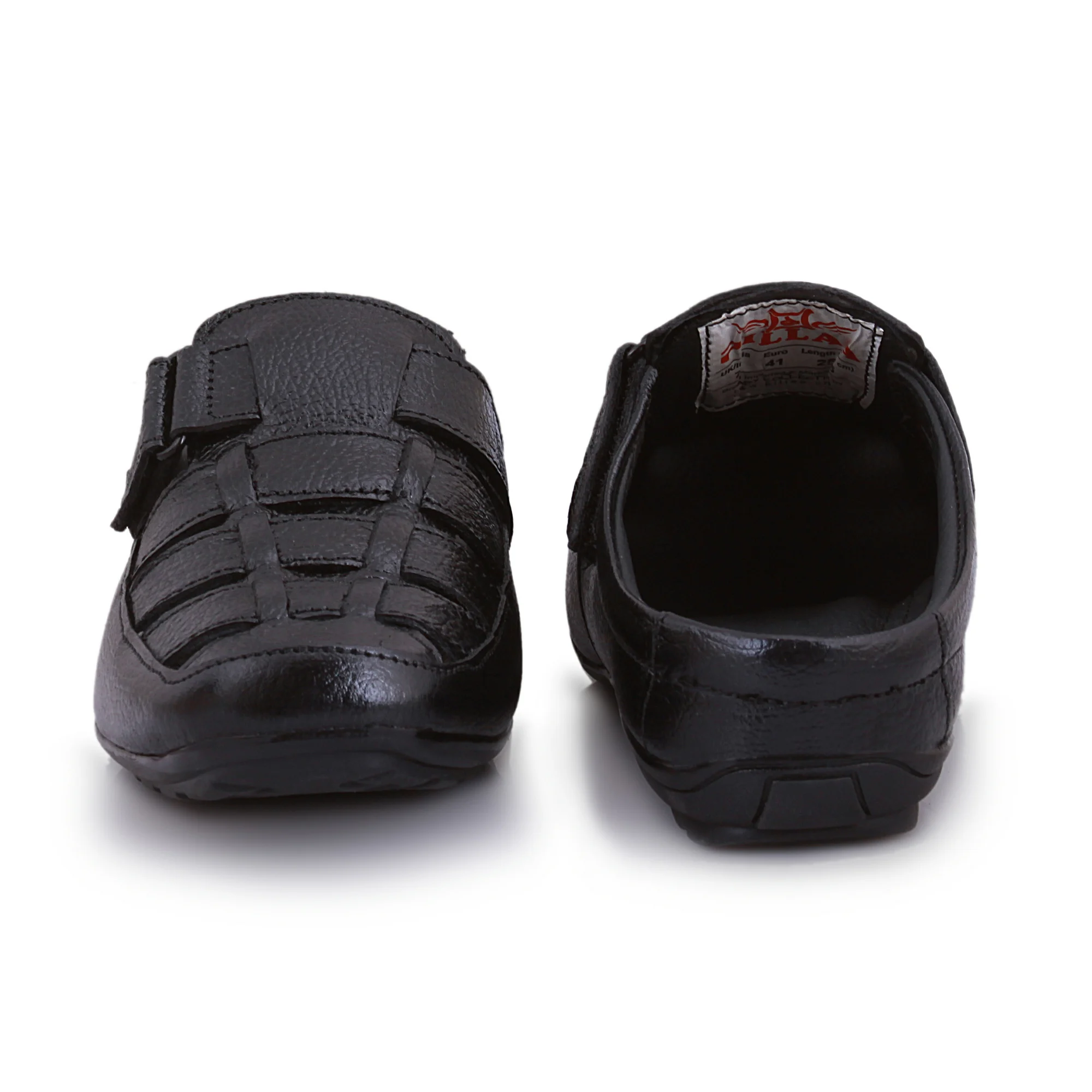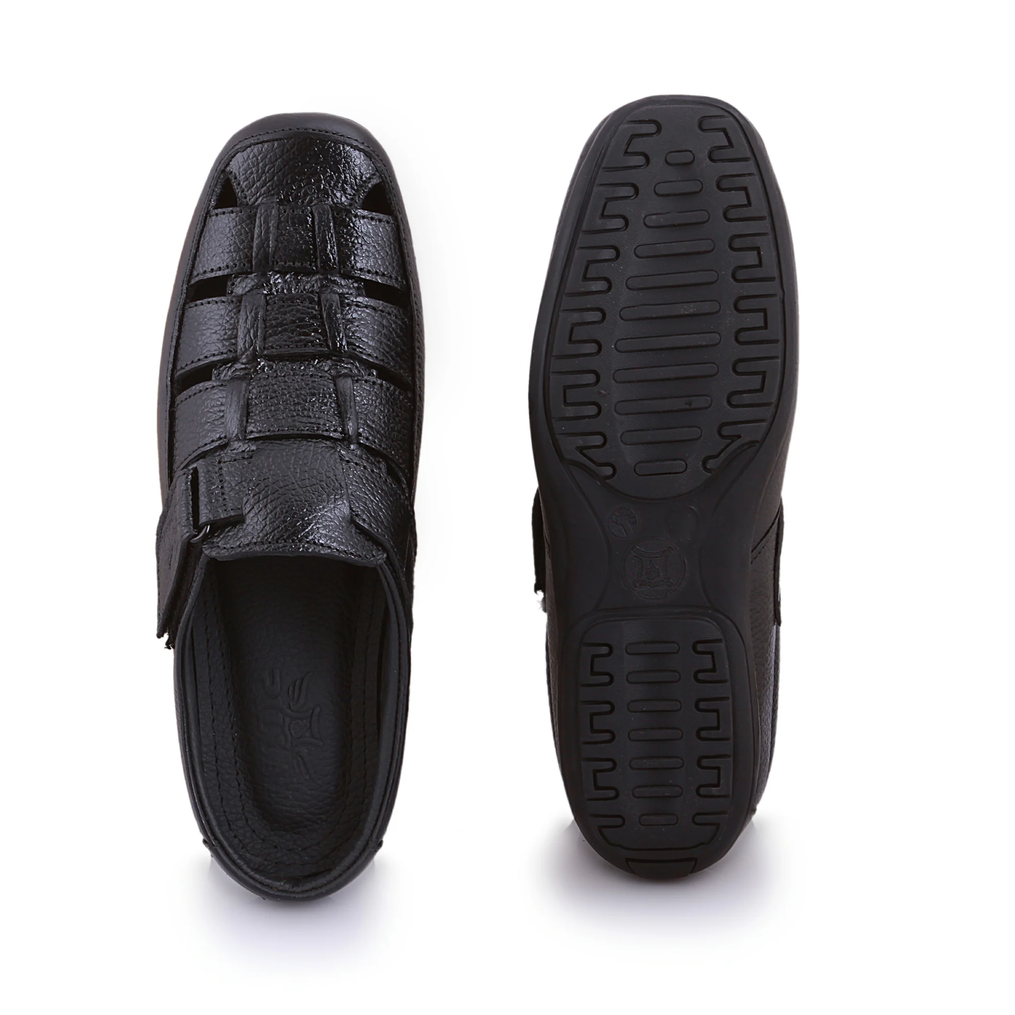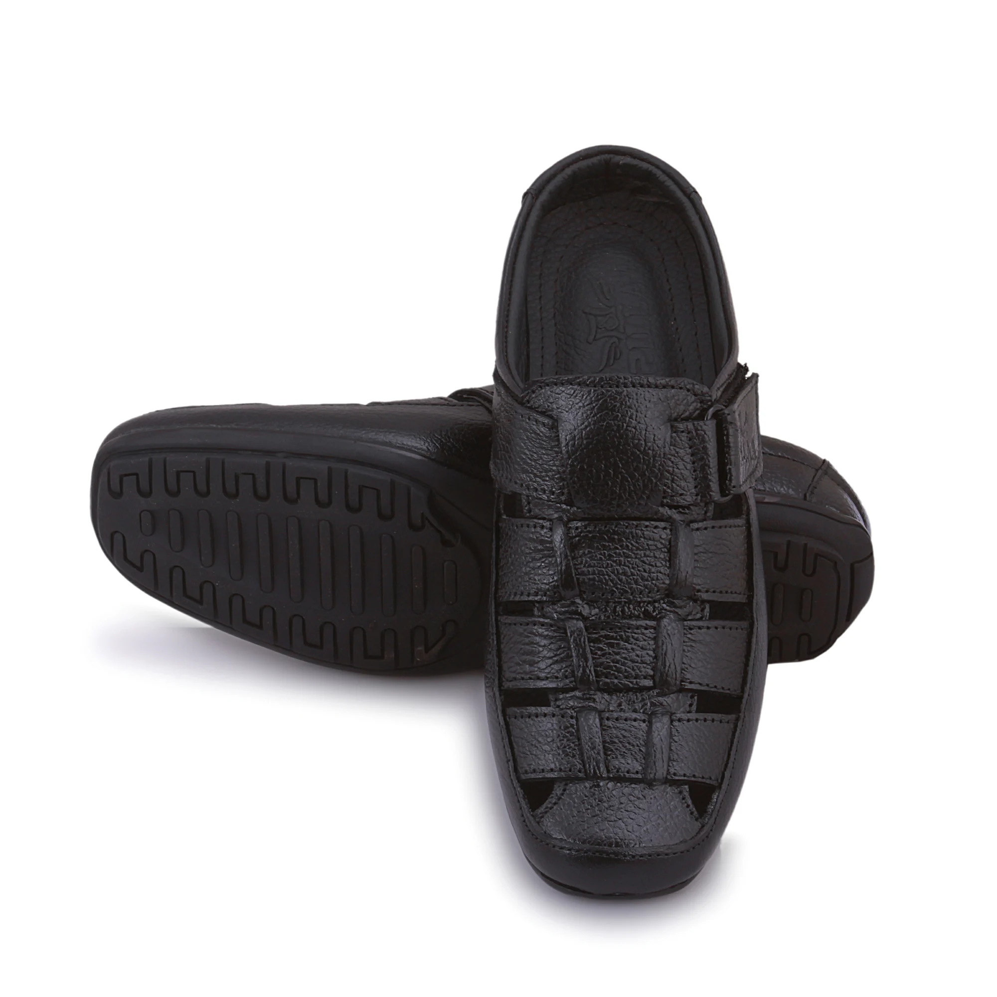 Black Leather Sandals are designed for men who want everyday comfort, durability, and a practical casual style suitable for Indian weather conditions. Crafted from premium-quality genuine leather, these black leather casual sandals offer a perfect balance between breathability and support. The closed-toe yet ventilated design allows proper airflow while still protecting the front of the foot, making them ideal for daily use. The adjustable strap closure ensures a secure and personalized fit, while the soft leather upper adapts naturally to the shape of the foot over time. The classic black color adds versatility, allowing these sandals to pair effortlessly with jeans, trousers, or casual ethnic wear. Whether worn at home, outdoors, or during daily errands, these sandals deliver consistent comfort without compromising on appearance. The interior features a soft lining that minimizes friction and prevents discomfort during extended wear, while the cushioned footbed absorbs impact and reduces strain on the feet. Designed for regular walking and standing, these black leather sandals provide reliable support throughout the day, making them a dependable choice for everyday footwear.