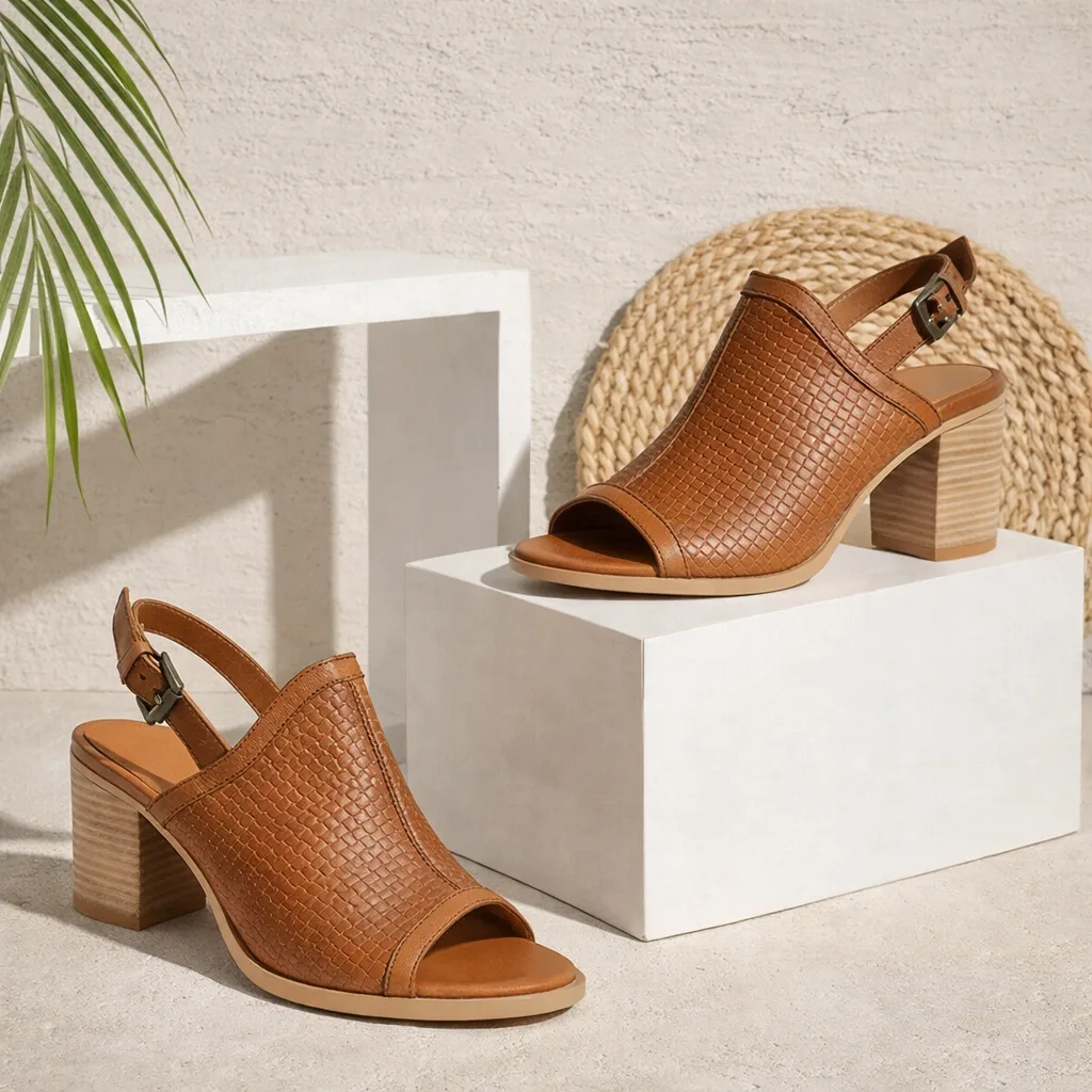 women heel sandal styles like this tan block heel design are perfect for women who want a balance of comfort and everyday elegance. The sandal features a structured upper with a refined textured finish that enhances its overall appearance without being overpowering. The tan color offers excellent versatility, pairing well with Indian and western outfits alike, including kurtis, dresses, jeans, and formal trousers. The open-toe front keeps the design breathable, making it suitable for daily wear in warm climates while maintaining a polished and put-together look.