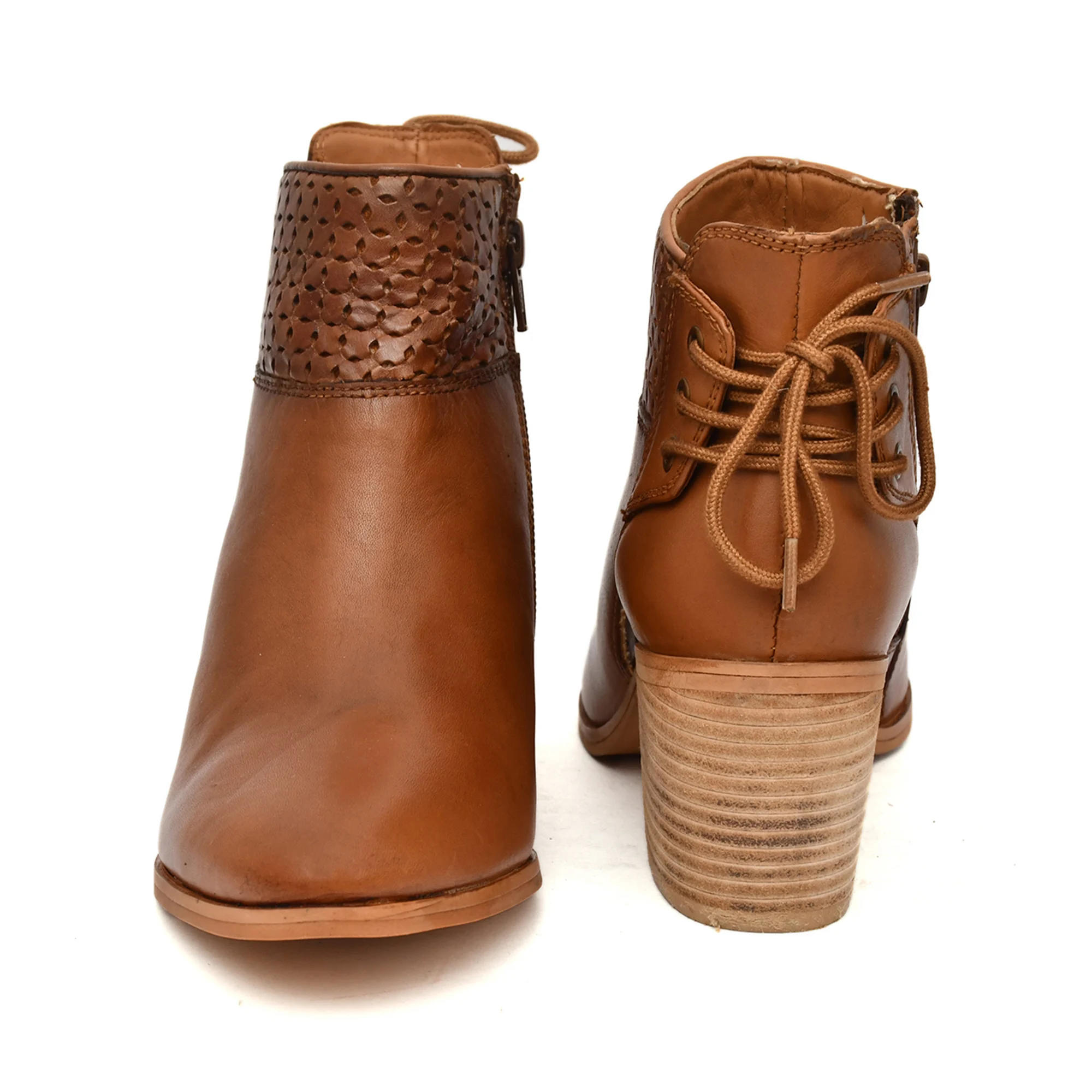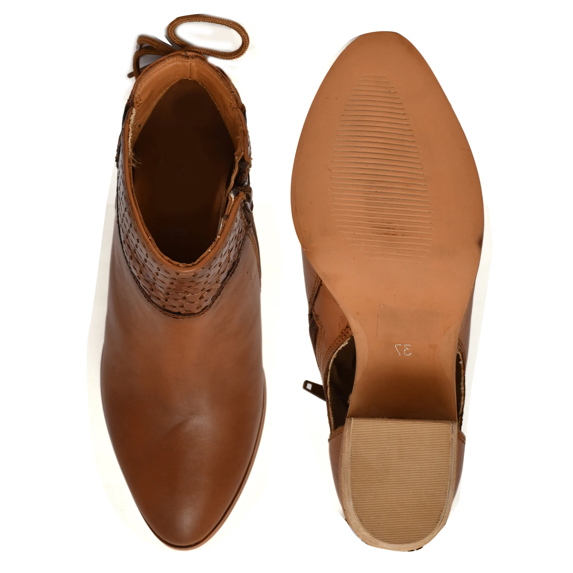Tan Women Heeled Leather Sandal