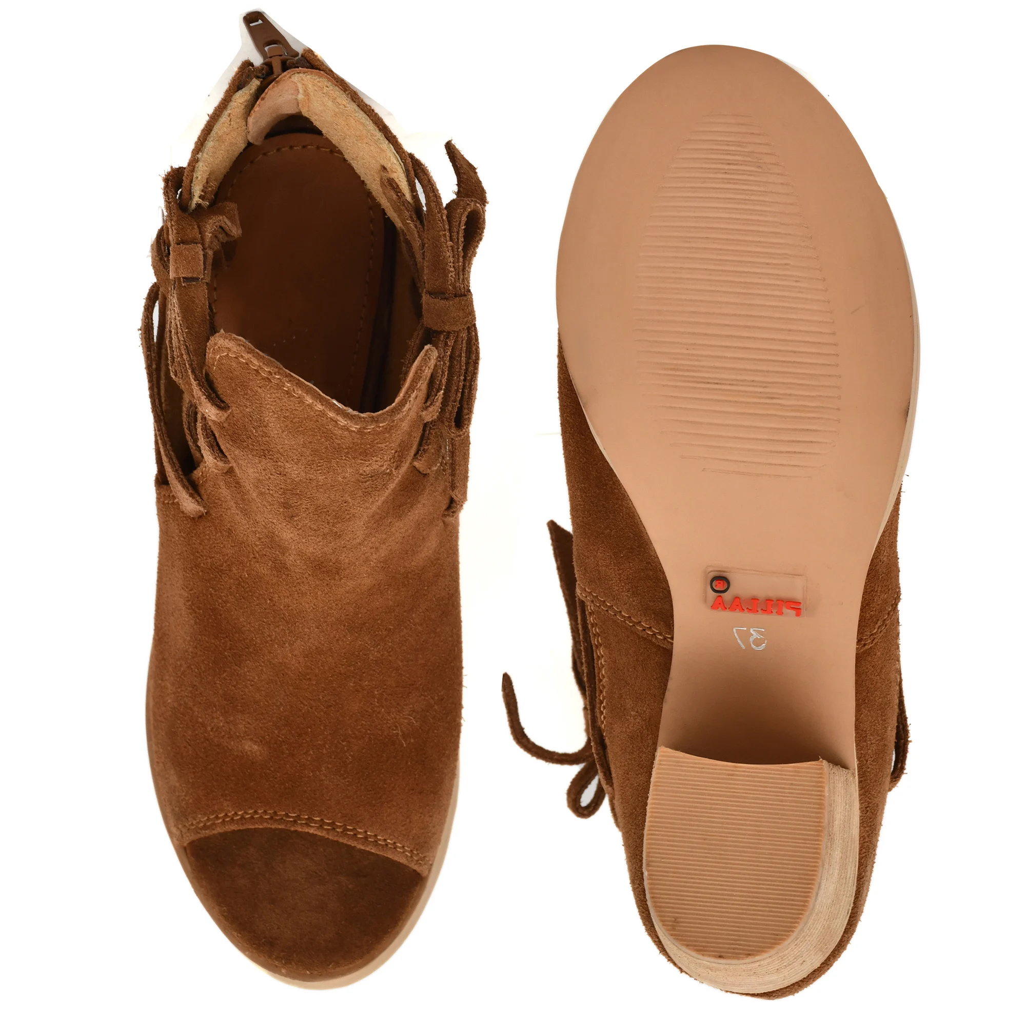 To maintain your tan women sandal, clean the suede surface gently using a soft brush or dry cloth to remove dust. Avoid washing with water, as suede leather is best preserved when kept dry. If the sandal comes into contact with moisture, allow it to air dry naturally away from heat sources.